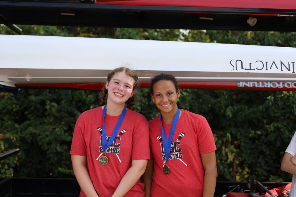 On Saturday Sept. 20th, USC Rowing competed in the Glass City Regatta in Toledo, Ohio. It was our second visit to Toledo, having competed in 2023 previously. The race duration was over 4 kilometers! So these accomplishments were no small feat. The Freshman newcomers Hadley Rideout and Hadley Maxwell joined returning Veteran Kyriaki Smith…